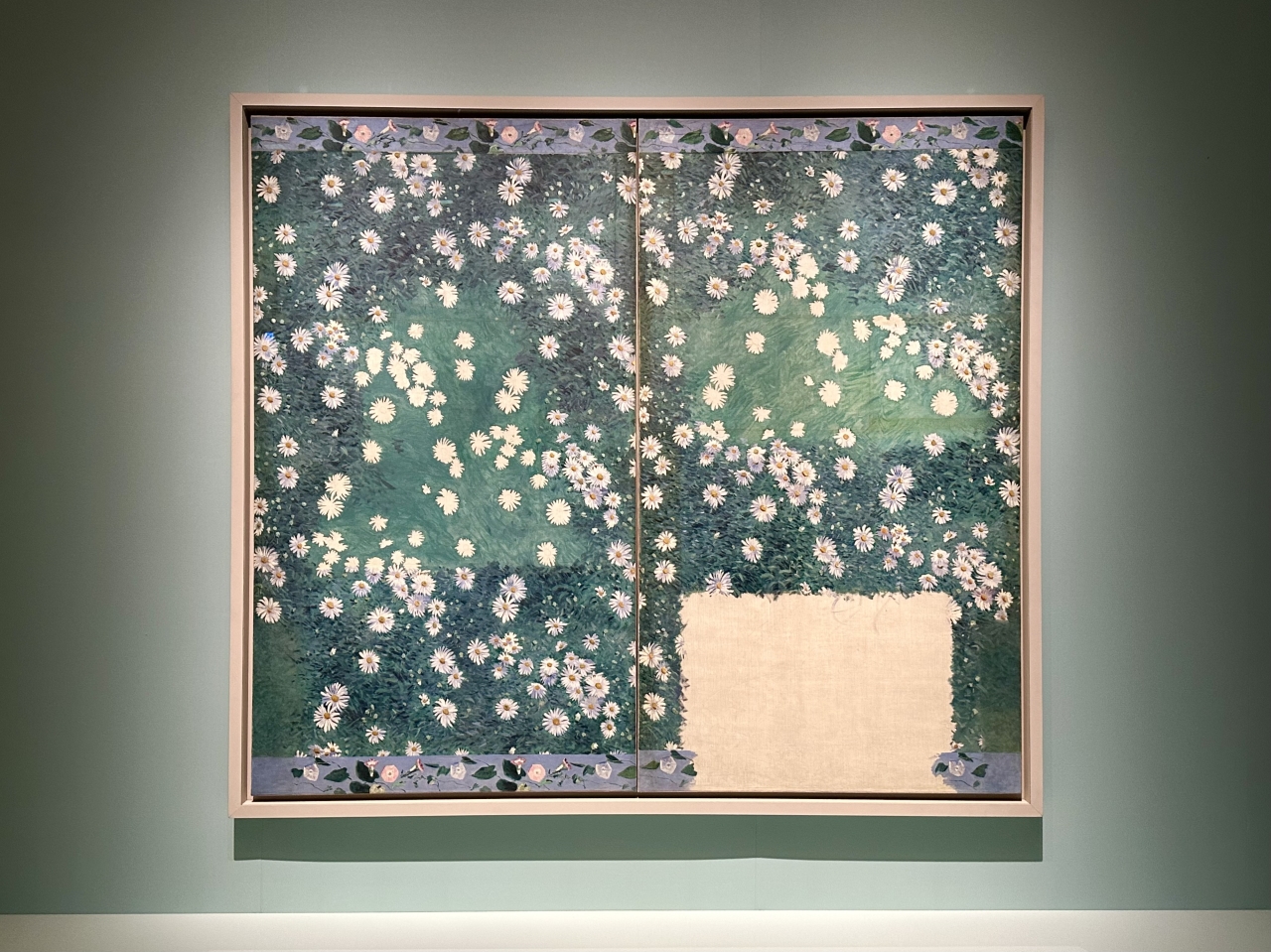 Gustave Caillebotte, who shared Monet's passion for horticulture and landscaping, also had a strong interest in decorative botanical paintings. Bed of Daisies (1892-1893) is an unfinished work that is thought to have been conceived as a wall decoration for his own home. By scattering white daisies across the canvas from a bird's-eye view, the work creates a sense of immersion that seems to envelop the viewer. The image, which stretches out infinitely without beginning or end, overlaps with the Water Lilies series that culminated in Monet's "Large Decorative Paintings" project.