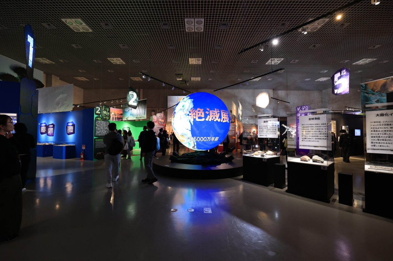 With this Great Extinction Sphere at the center, there are six areas arranged radially, including an area that explains the Big Five episode by episode, and an area that touches on the world of the Cenozoic Era that followed. Every time you finish looking at one area, you return to the Great Extinction Sphere, which is a somewhat unusual exhibition structure for a special exhibition at the National Museum of Nature and Science, and the key point is that it is easy to move between each area.