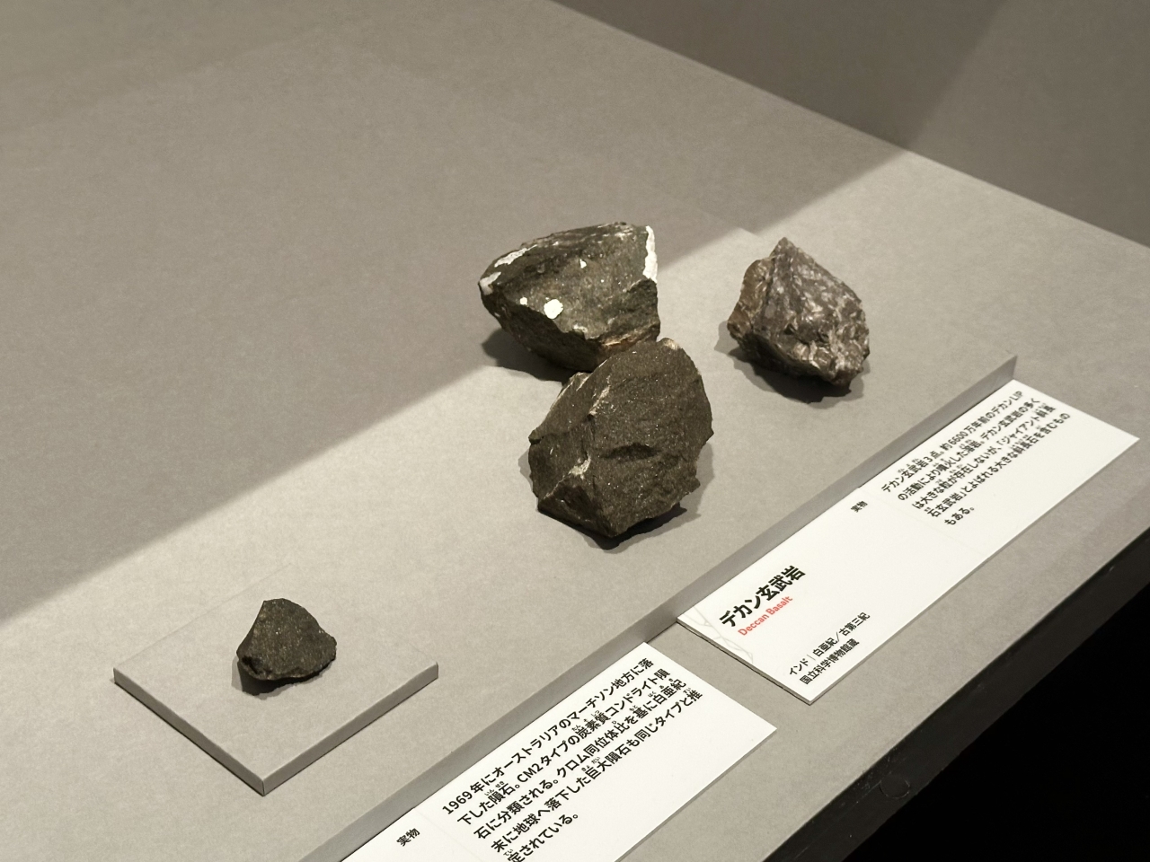 The venue displays a CM2-type carbonaceous chondrite meteorite that is believed to be of the same type as the asteroid, which fell in the Murchison region of Australia in 1969, as well as specimens of the geological strata formed by the earthquake and giant tsunami that occurred when the asteroid collided.
