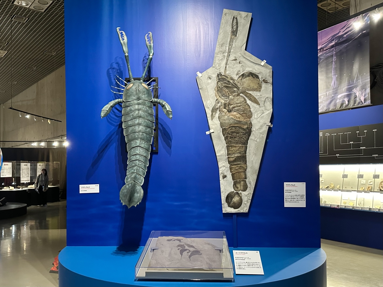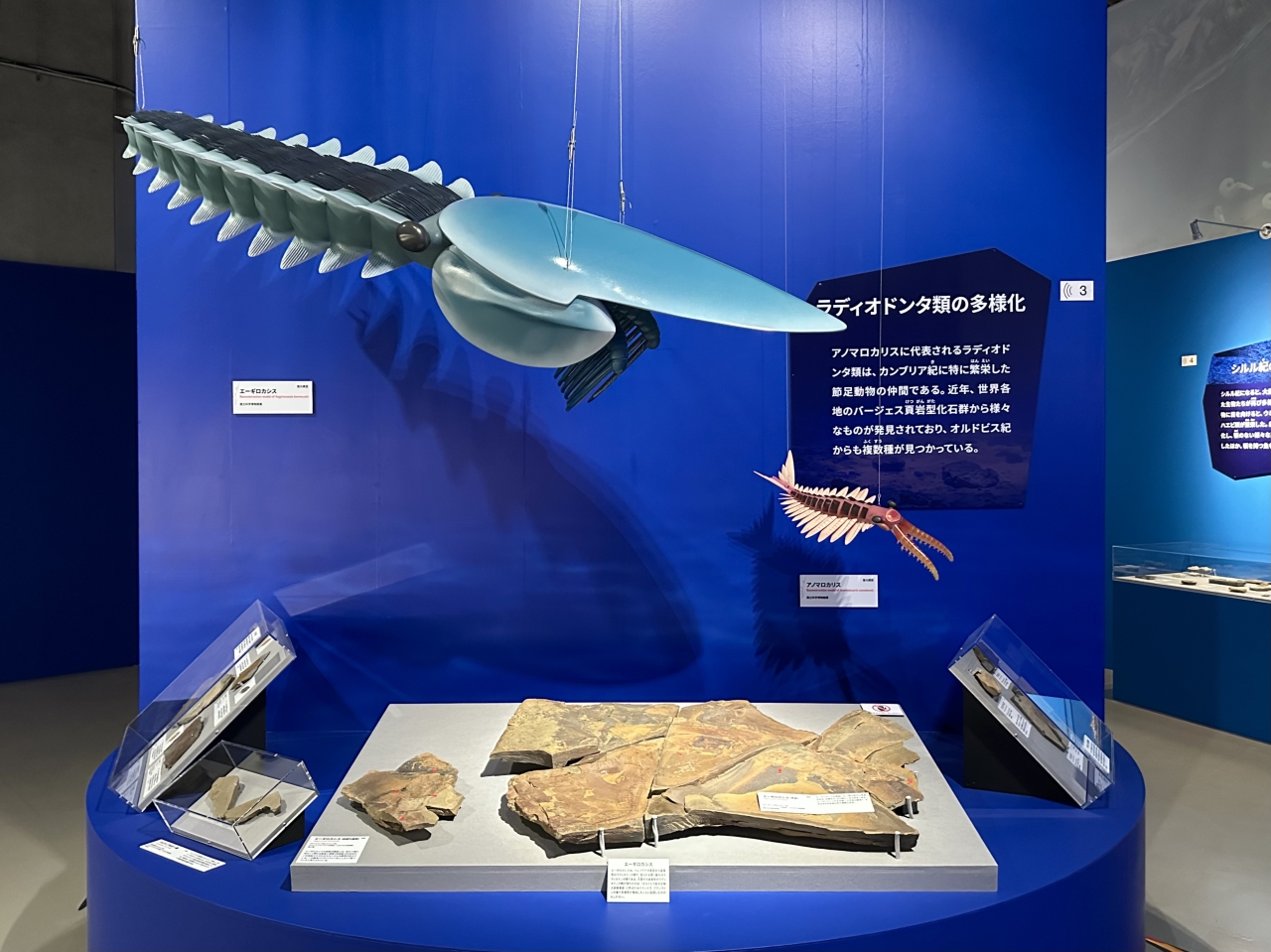 Exhibition view of Episode 1 "OS Boundary: Diversification of Marine Environments" / Exhibition of Radiodonta, represented by Anomalocaris, which lived mainly from the Cambrian to Ordovician periods