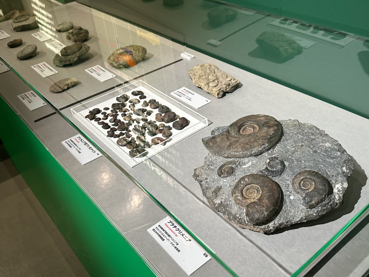 Exhibition view of Episode 2 "FF Boundary: The Development of Terrestrial Ecosystems" / Ammonites, which appeared in the Early Devonian period, thrived in oceans around the world until the fifth mass extinction at the end of the Cretaceous period, going through repeated extinctions and recoveries.