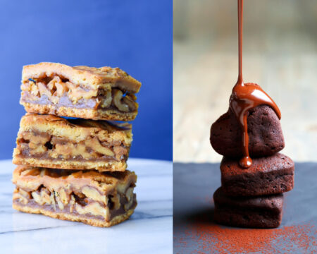 "Engadiner" features a crunchy texture with caramel nougat and walnuts sandwiched between crispy cookie dough, while "Gâteau au Chocolat" is smooth and rich, melting in your mouth.
