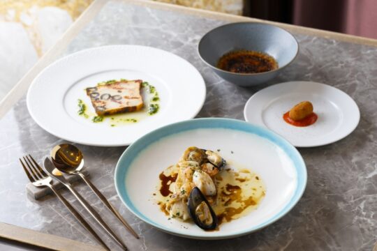 The interior of the restaurant, which was renovated from a former VIP room, combines Art Deco style with modern design.