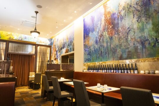 The restaurant is divided into two areas: one with murals by the artist Sanada Shotarou, and the other a renovated VIP room that was used by members of the royal family and government officials to wait for trains before the war. The unique charm of this restaurant is that you can enjoy wine and food in a relaxed atmosphere in each of these different spaces.