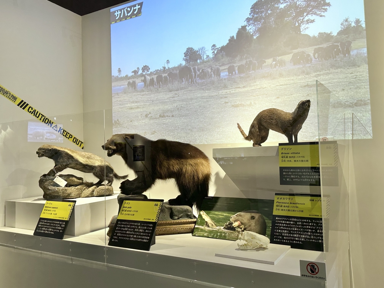 "Killer bite" type exhibit featuring wolverines, honey badgers, and other members of the weasel family.