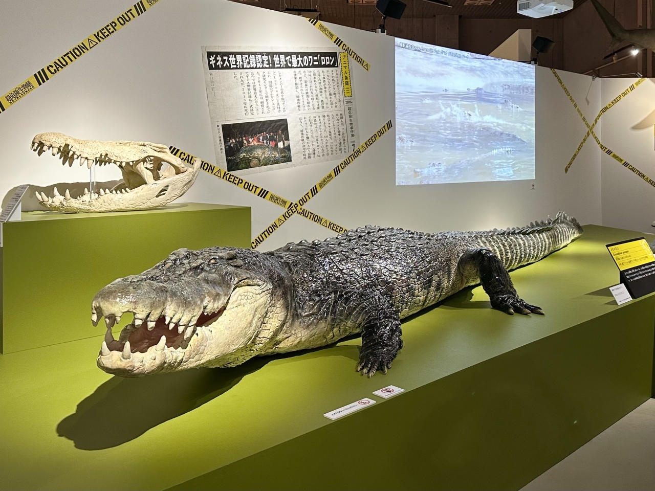 Furthermore, the "Killer Bite" exhibit features the first-ever public display in Japan of a life-size replica of the world's largest saltwater crocodile, nicknamed "Roron," which measures over 6 meters in length .