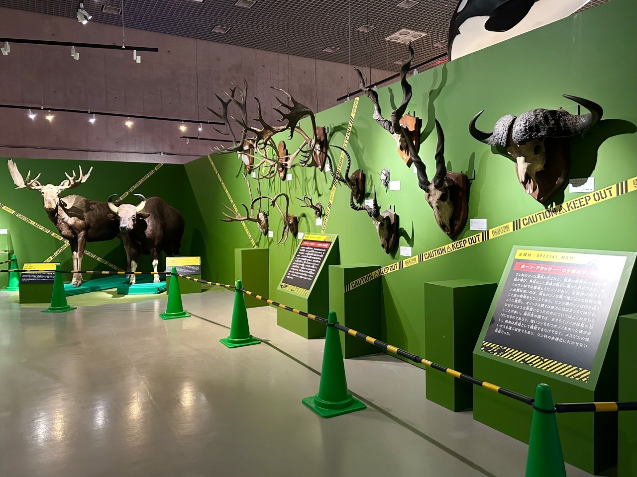 This is an exhibit featuring "armed" animals. The sight of the stylish horns of bovine and deer species lined up is spectacular.