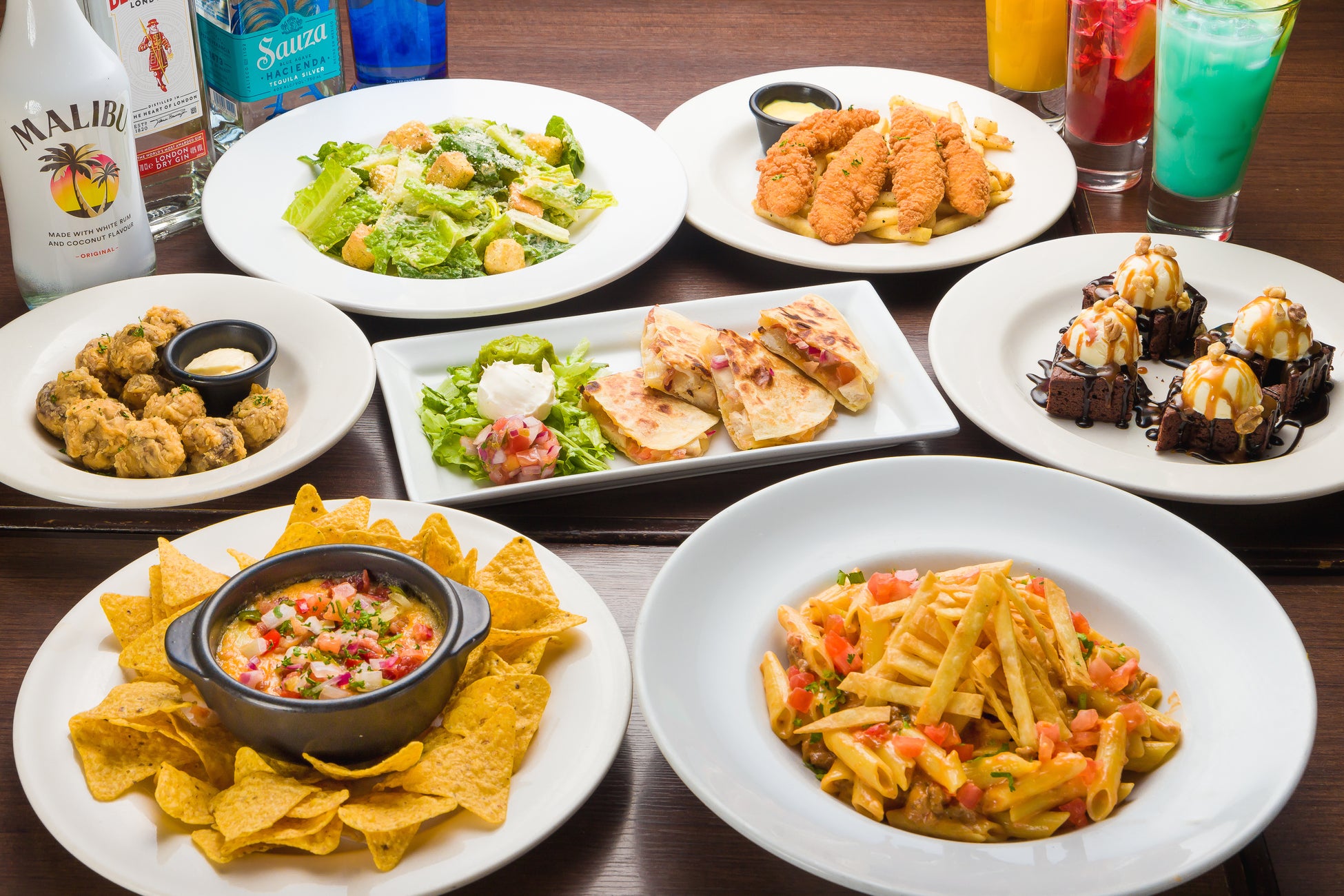 凯撒沙拉 ・星期五蘑菇 ・鸡肉玉米饼 ・火腿奶酪卷 ・鸡柳 ・墨西哥风味通心粉 ・迷你布朗尼 ・MALIBU 原味鸡尾酒无限畅饮