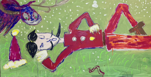 幅6メートルと3メートルの巨大壁画が会場に登場。荒々しい筆致と独自技法「beyond stroke」で知られる福岡出身のアーティスト・鳥越一輝が手がけ、見る者の感情を揺さぶる圧倒的なエネルギーで空間を包み込みます。前衛美術「九州派」の精神を受け継ぐ作品としても注目されています。