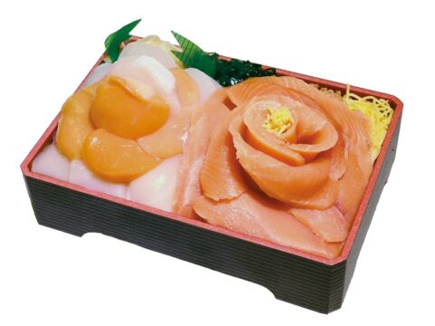 函館〈椀屋〉紅白ホタテ・知内サーモン盛り盛り弁当