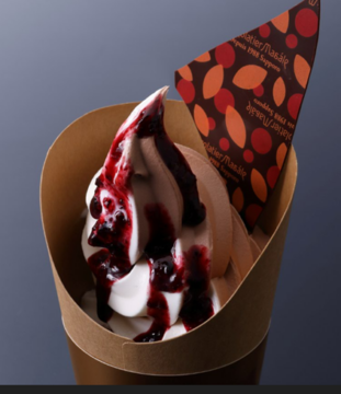 北海道を代表する本格チョコレート専門店。一番人気のショコラブラウニーの生地とショコラティエのショコラソフトに、北海道産アロニアとブルーベリーのソースを合わせました。