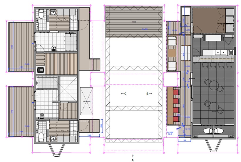 天井3mの空間を生かした2種類の貸切サウナ