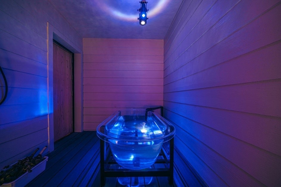 サウナをでると3歩で水風呂へ。チラー付きで1年中キンキンに冷えた水温です。さらに寝そべれる外気浴で新たな「ととのい」をご体験いただけます。