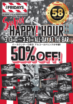 3月13日(月)~3月31日(金) TGI Fridays Japanが、運営する世界55か国で850店舗以上を展開する世界最大級のアメリカンカジュアルダイニングチェーン「TGI フライデーズ」は、3月13…
