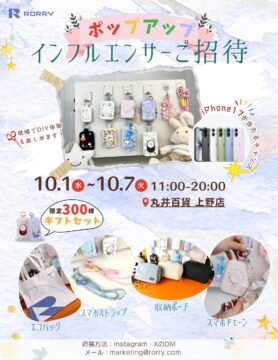限定ギフトやDIY体験、iPhone17が当たる抽選も実施 「RORRY」は、2025年10月1日(水)から10月7日(火)までの7日間、丸井百貨 上野店にてPOP UPストアを開催いたします。 会場では、…