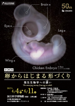 2017年4月4日(火)から6月11日(日)まで、企画展「卵からはじまる形づくり~発生生物学への誘い~」が国立科学博物館(上野公園)にて開催されます。 私たちヒトを含め、ネズミもカエルもニワトリもハエも、そして、植物もど…
