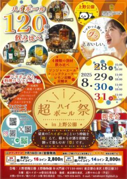 2025年8月28日(木)~8月31日(日)まで4日間開催!お得な前売りチケット発売中! 上野恩賜公園 上野動物園 弁天門前 にて「超ハイボール祭」初開催! 日本ではウイスキーの炭酸割りを“ハイボール”と呼ぶのが一般的で…
